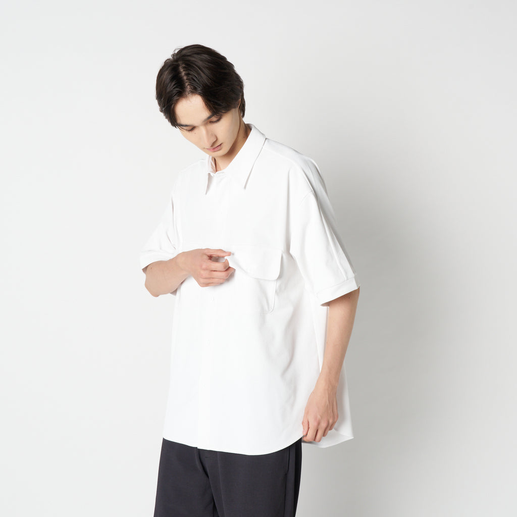ELNEST MOON PILE S/S SHIRTSは、ゆったりとしたワイド設計と風を取り込む立体パターンで快適な着心地を実現し、低めに配したダブルポケットや肩から裾へ伸びる独自のヨークが個性と機能性を演出。小さめの同色ボタンとバックのラバーネームがさりげない遊び心を添える一枚です。