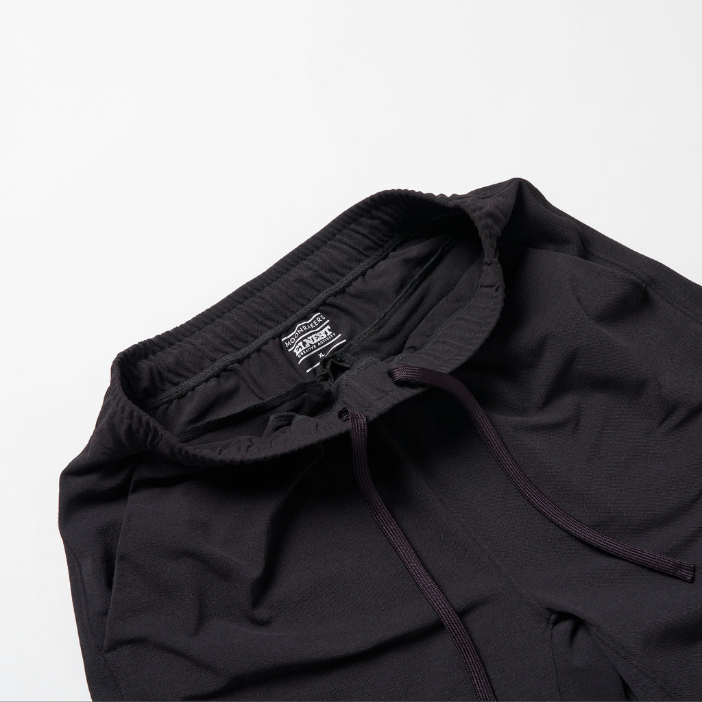 ELNEST MOON PILE SHORTSは、動きに合わせてつっぱりを軽減する非対称のテクニカルパターンと細部までこだわったディテールが特徴。ゆるめに設計されたウエストゴムで快適な着用感を実現し、バックポケットにはコンシールファスナーを採用。バックに施されたラバーネームが遊び心を添えています。